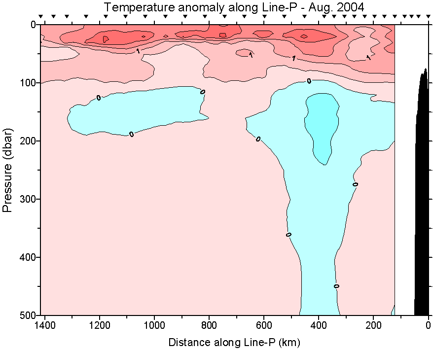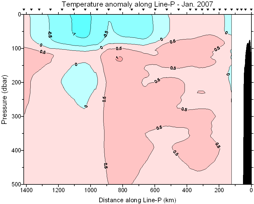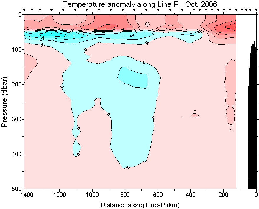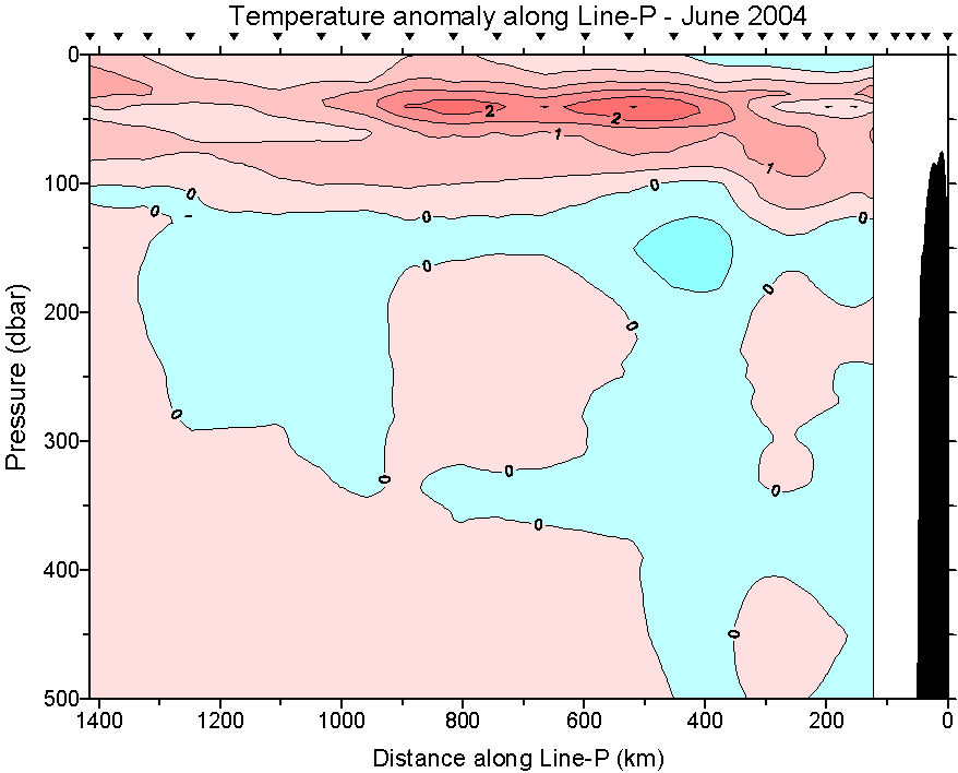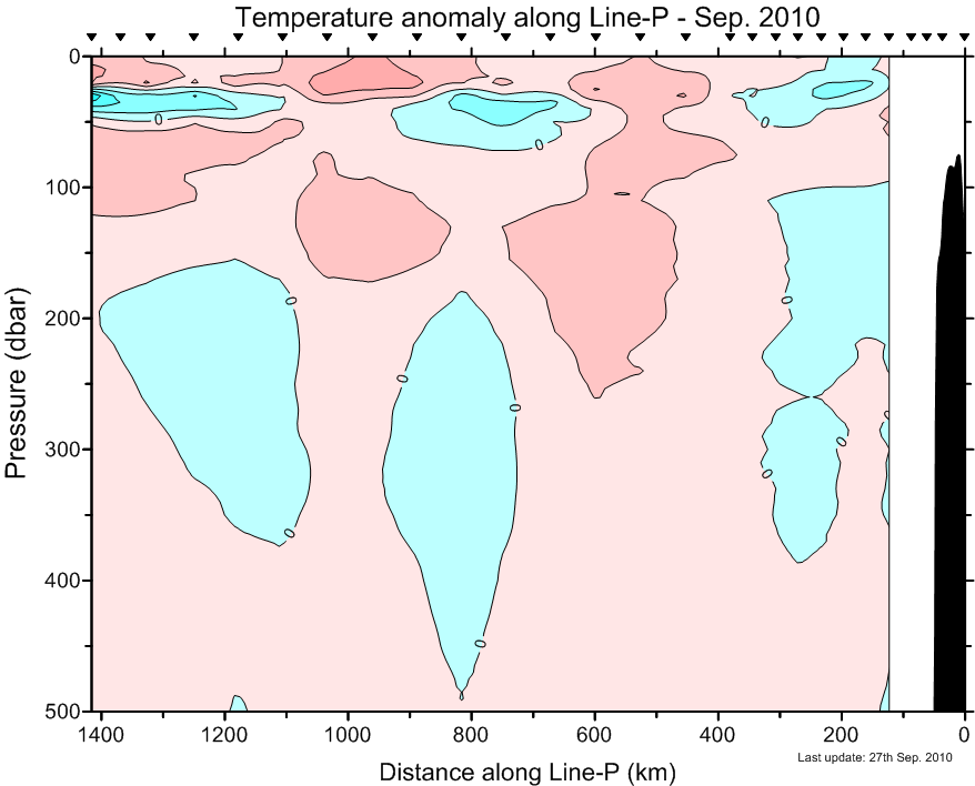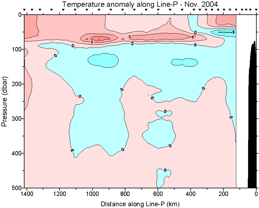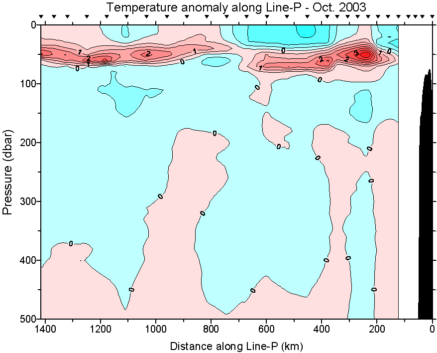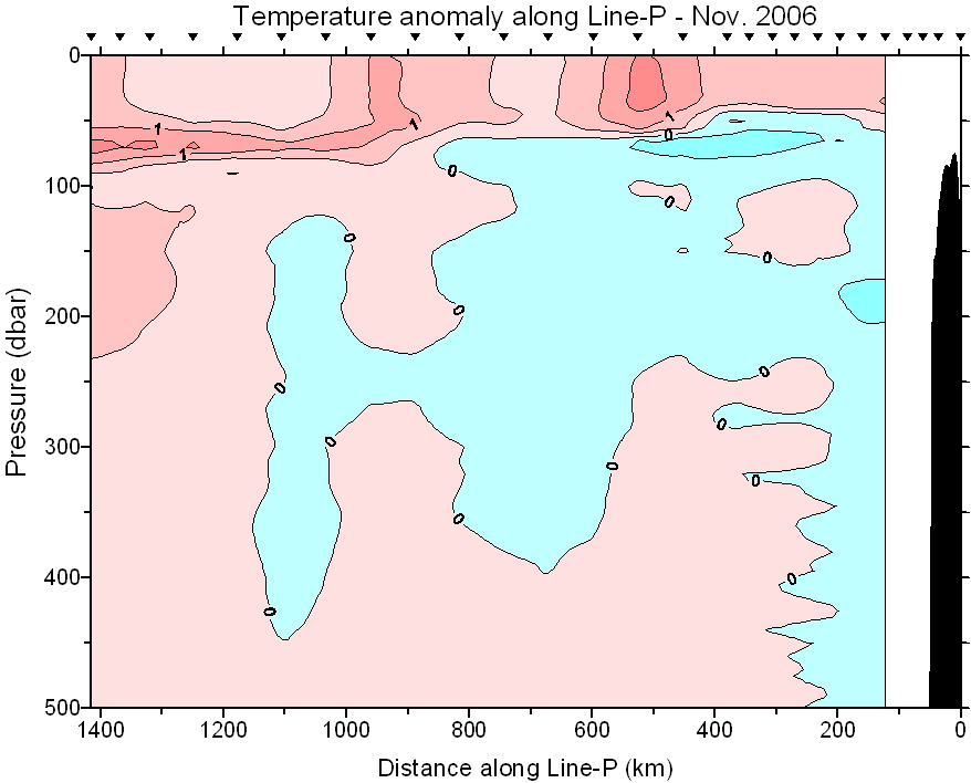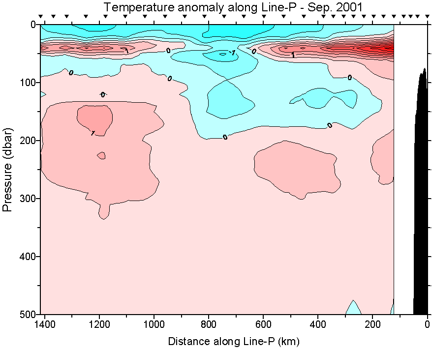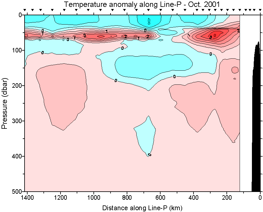La ligne océanique P est une série d'observations du golfe de l'Alaska depuis 1956 jusqu'à aujourd'hui. Ces données sont utilisées ici en raison de la disponibilité des observations climatologiques fiables retrouvées le long de la ligne océanique P.