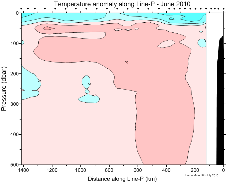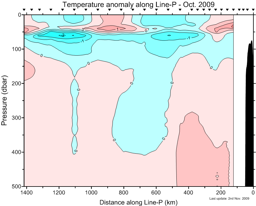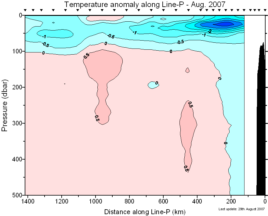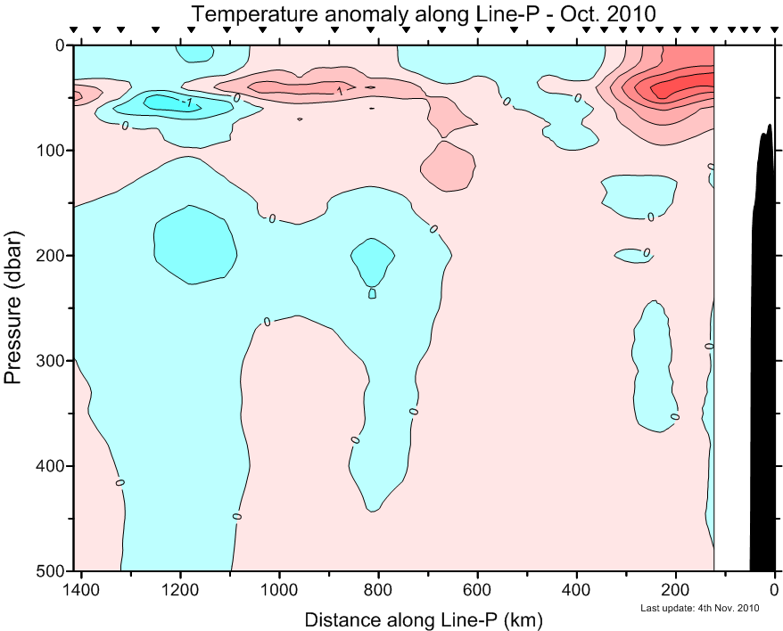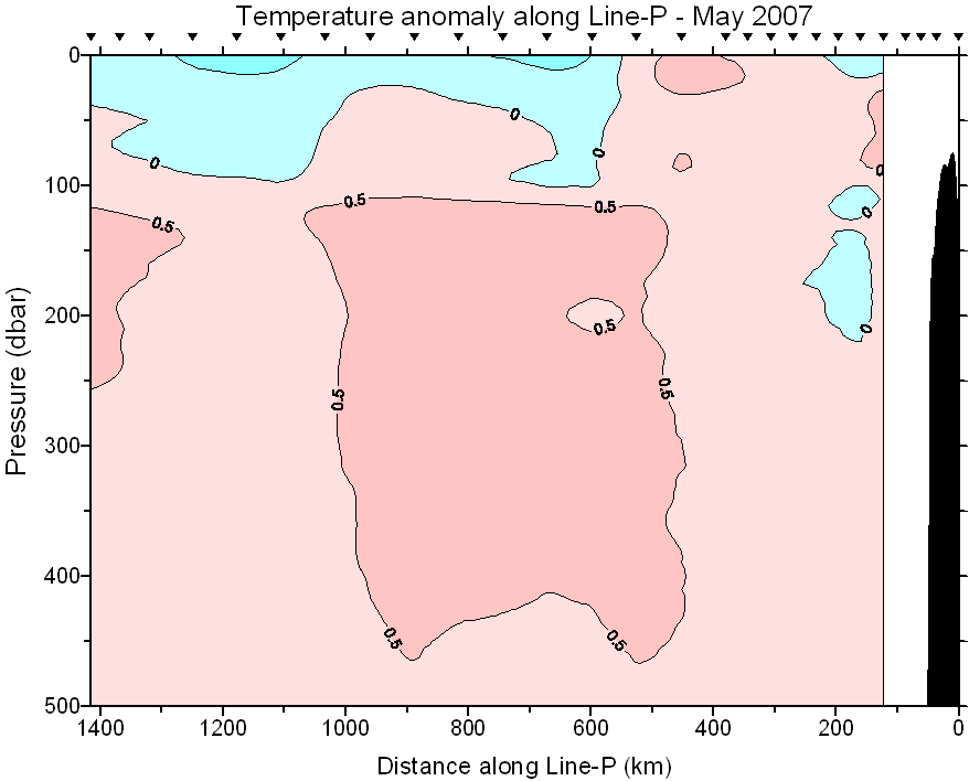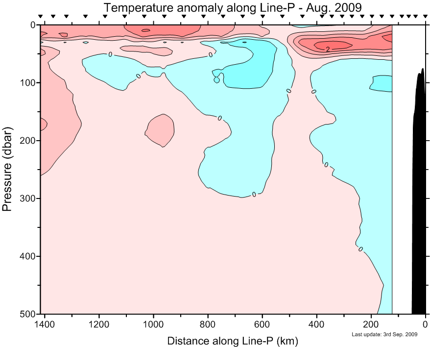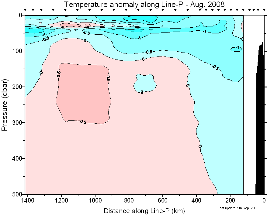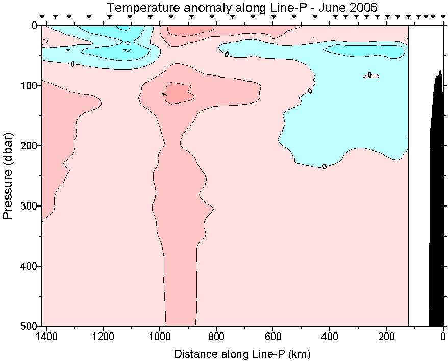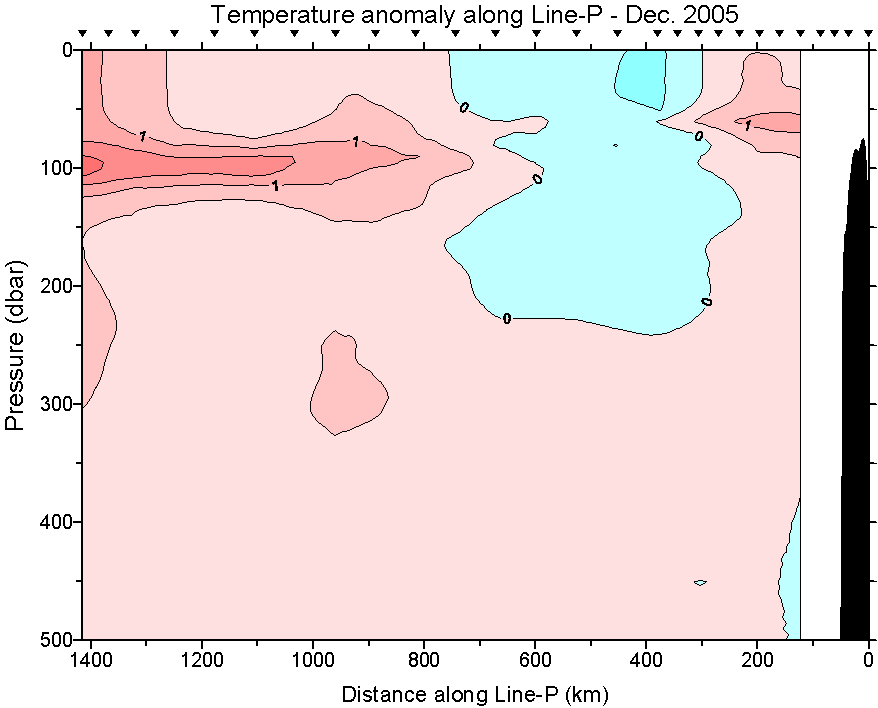La ligne océanique P est une série d'observations du golfe de l'Alaska depuis 1956 jusqu'à aujourd'hui. Ces données sont utilisées ici en raison de la disponibilité des observations climatologiques fiables retrouvées le long de la ligne océanique P.
