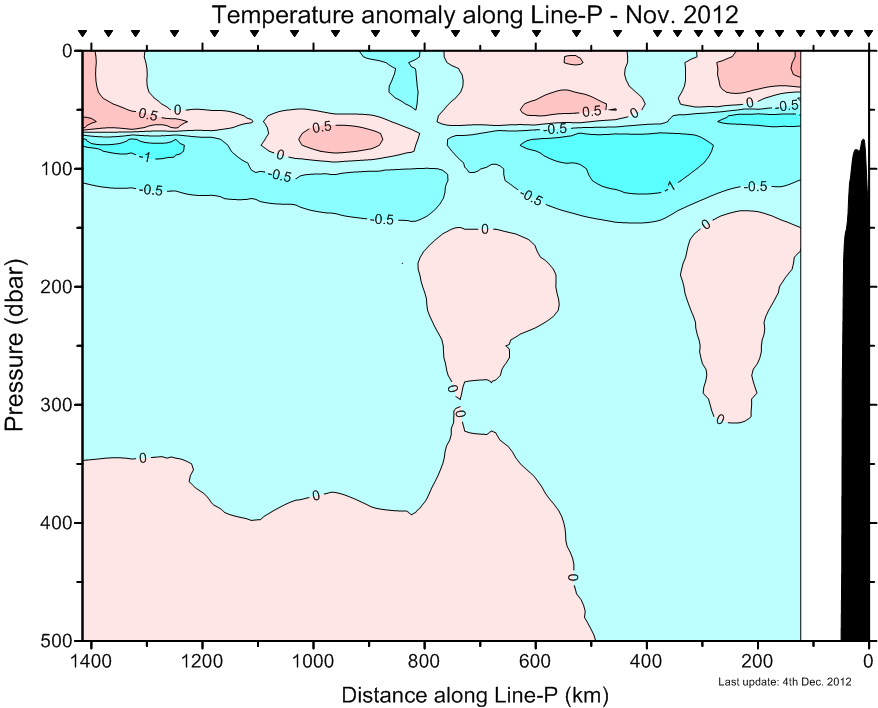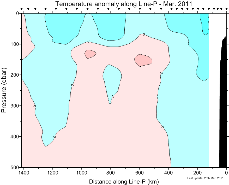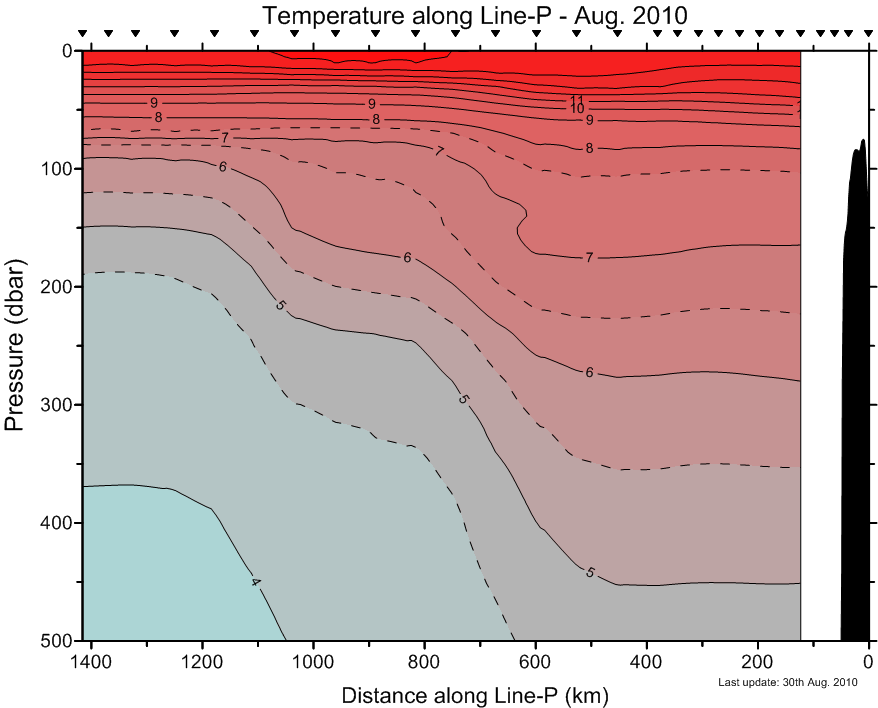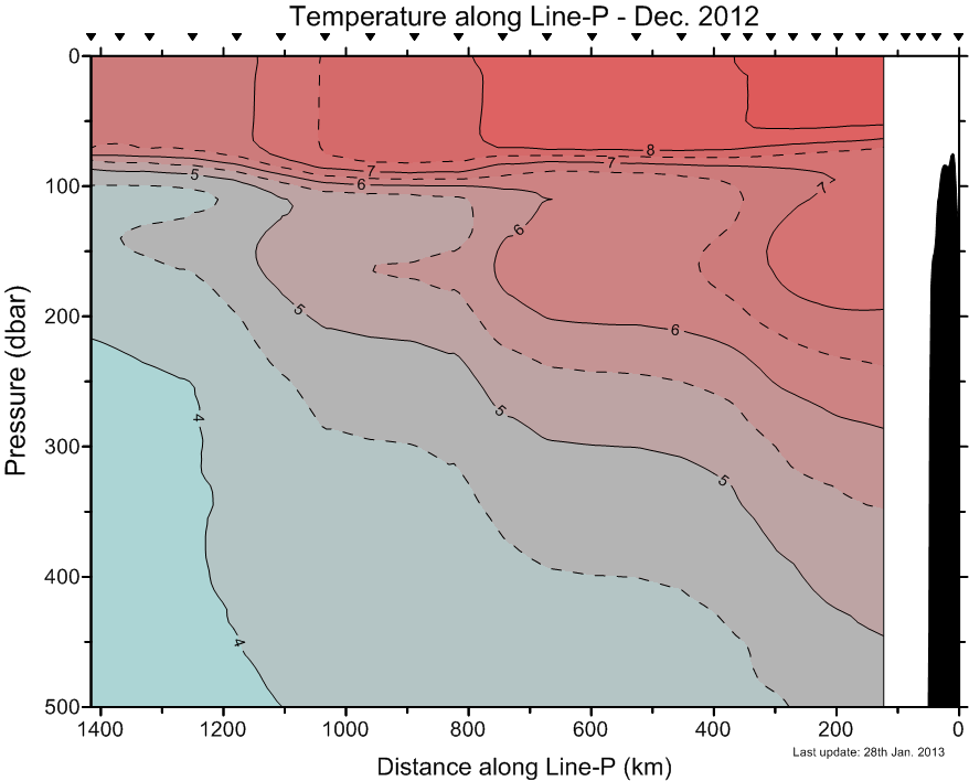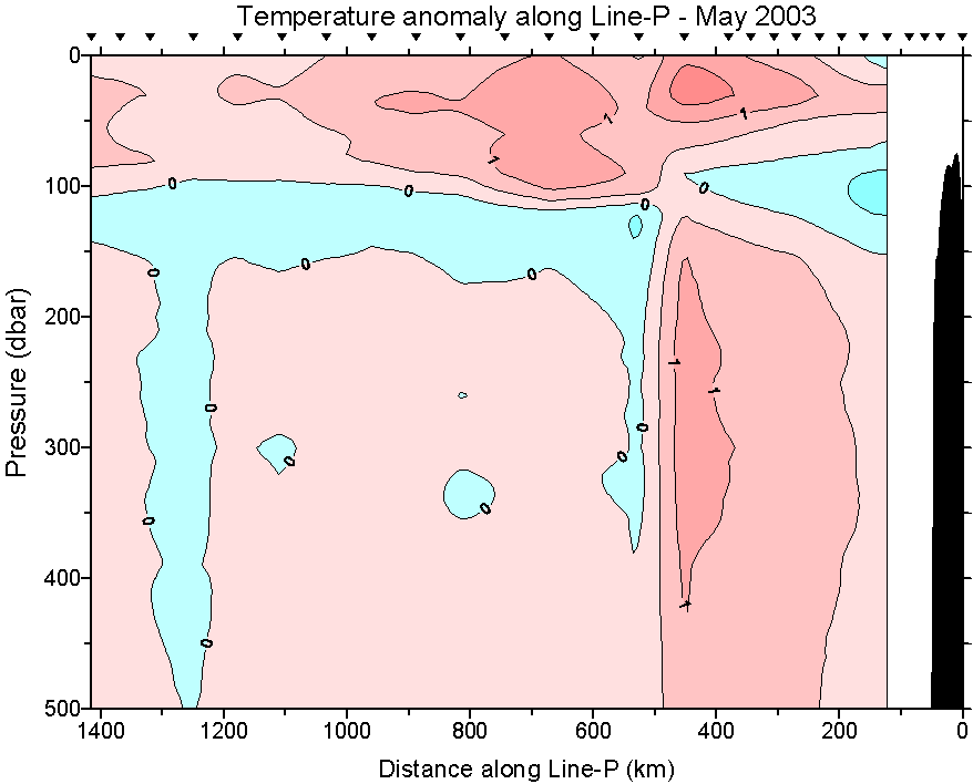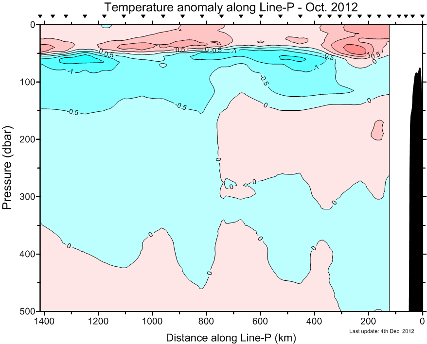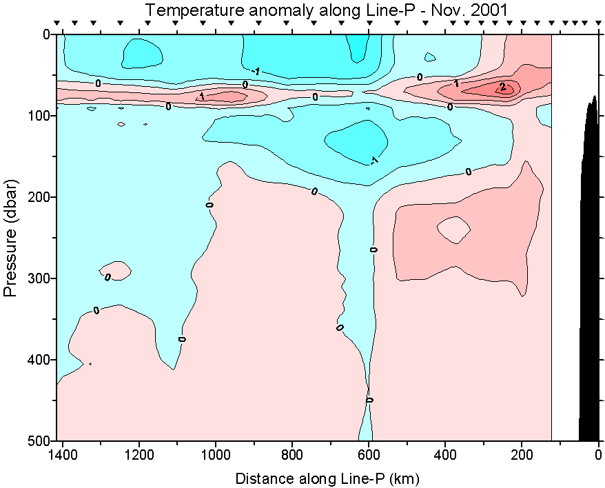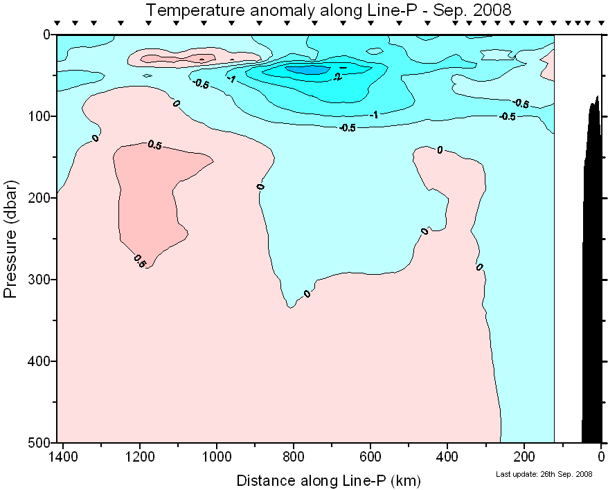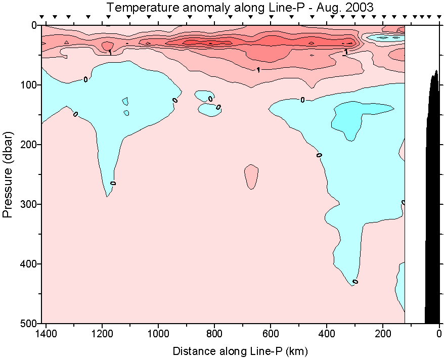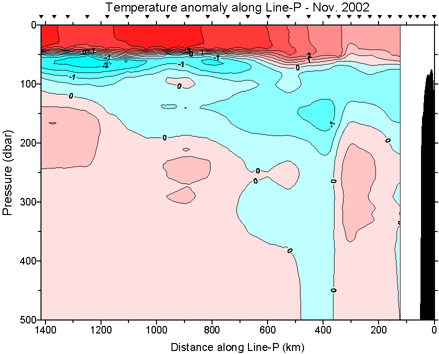 La ligne océanique P est une série d'observations du golfe de l'Alaska depuis 1956 jusqu'à aujourd'hui. Ces données sont utilisées ici en raison de la disponibilité des observations climatologiques fiables retrouvées le long de la ligne océanique P.