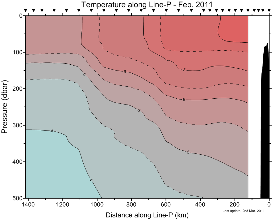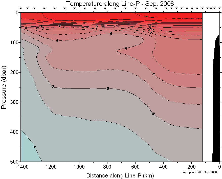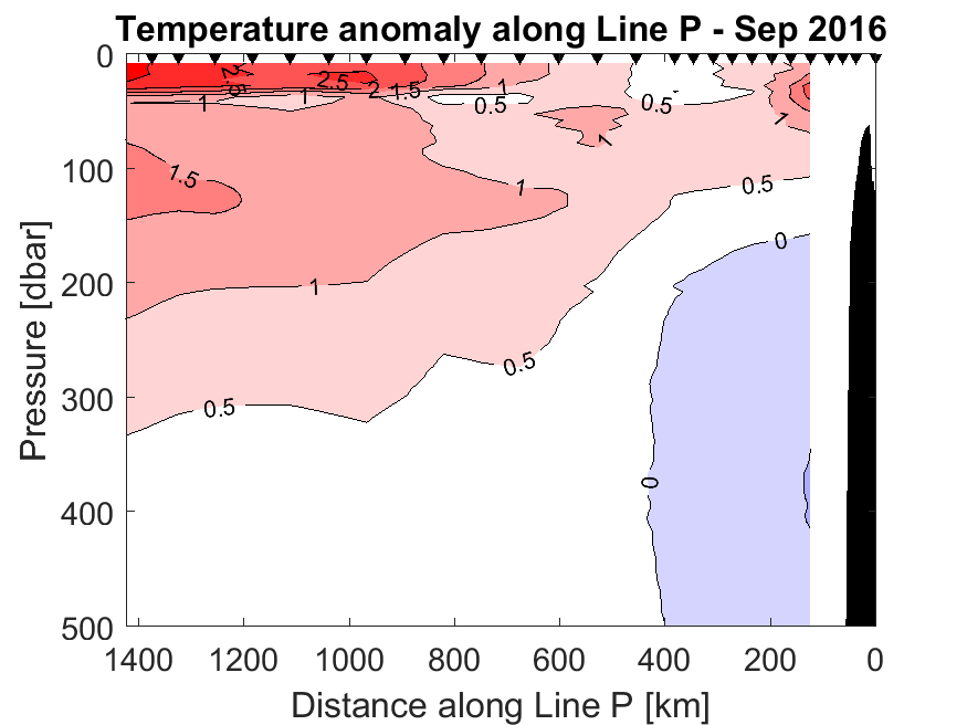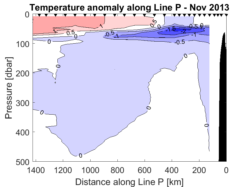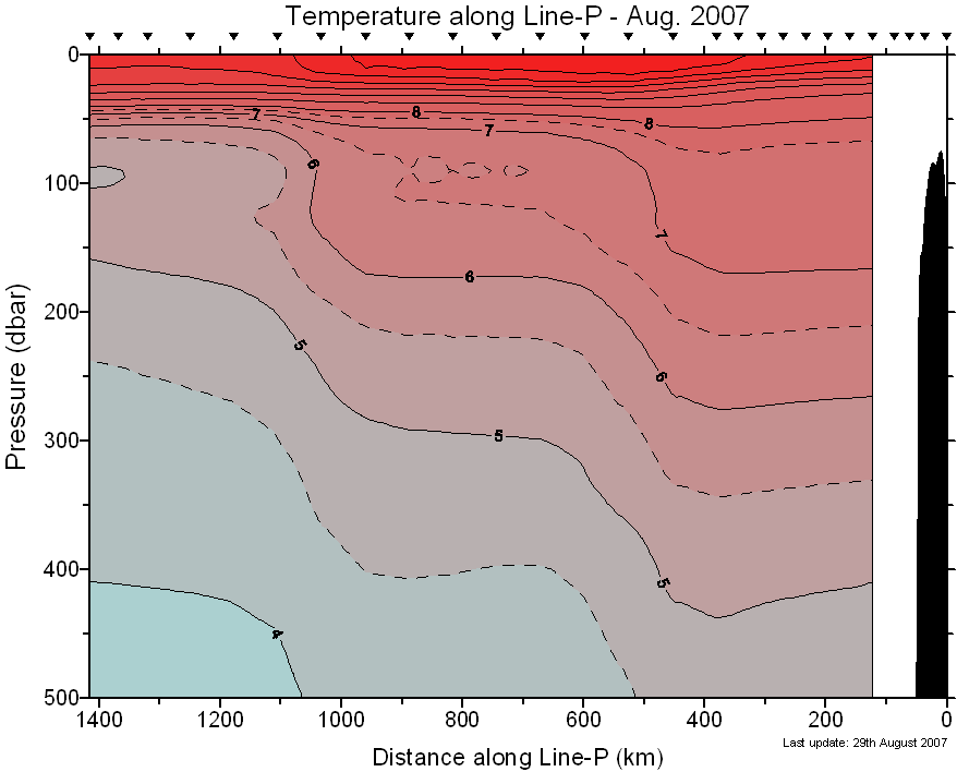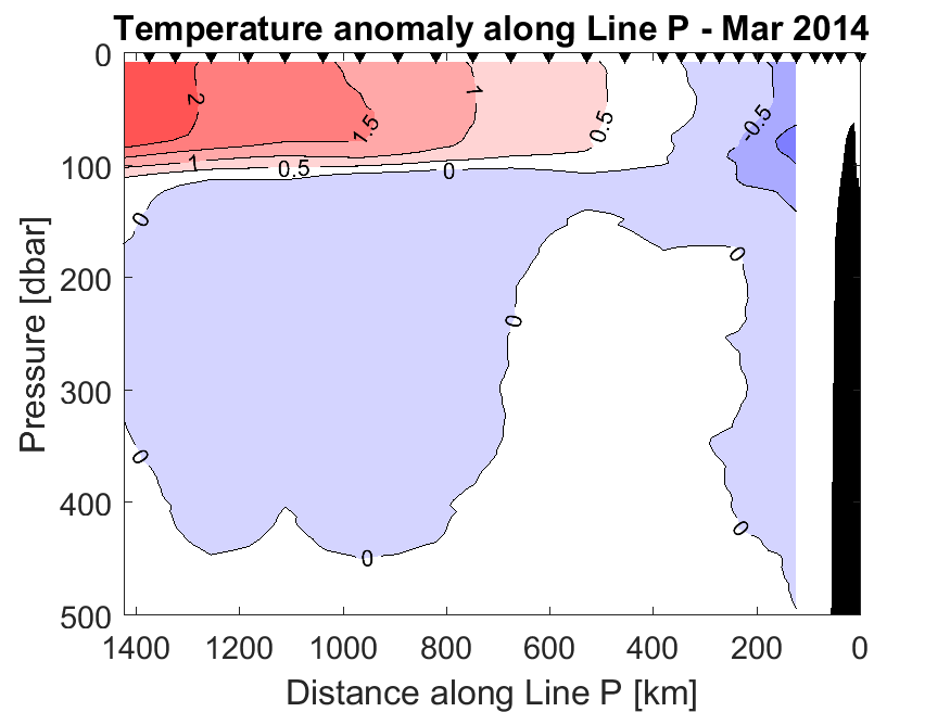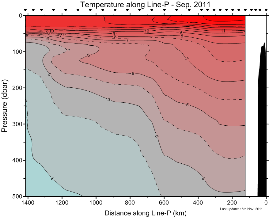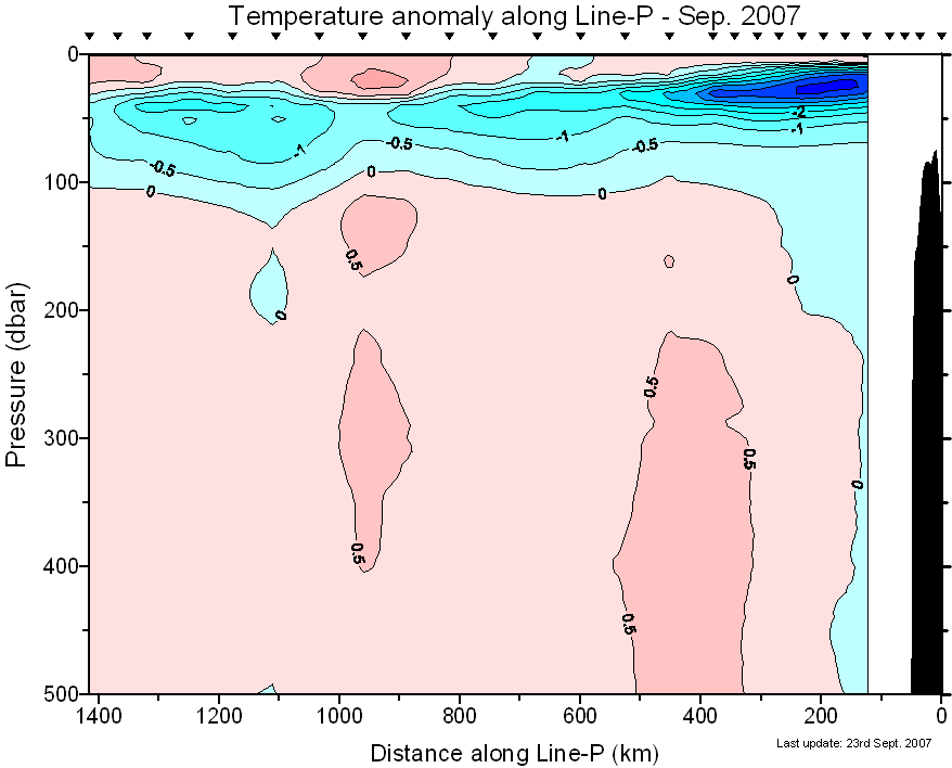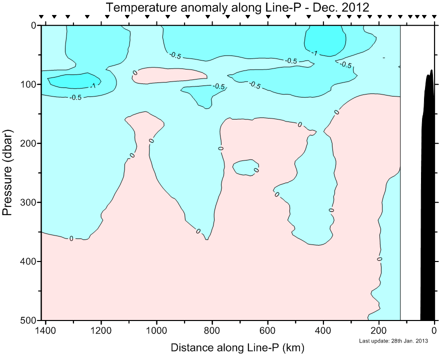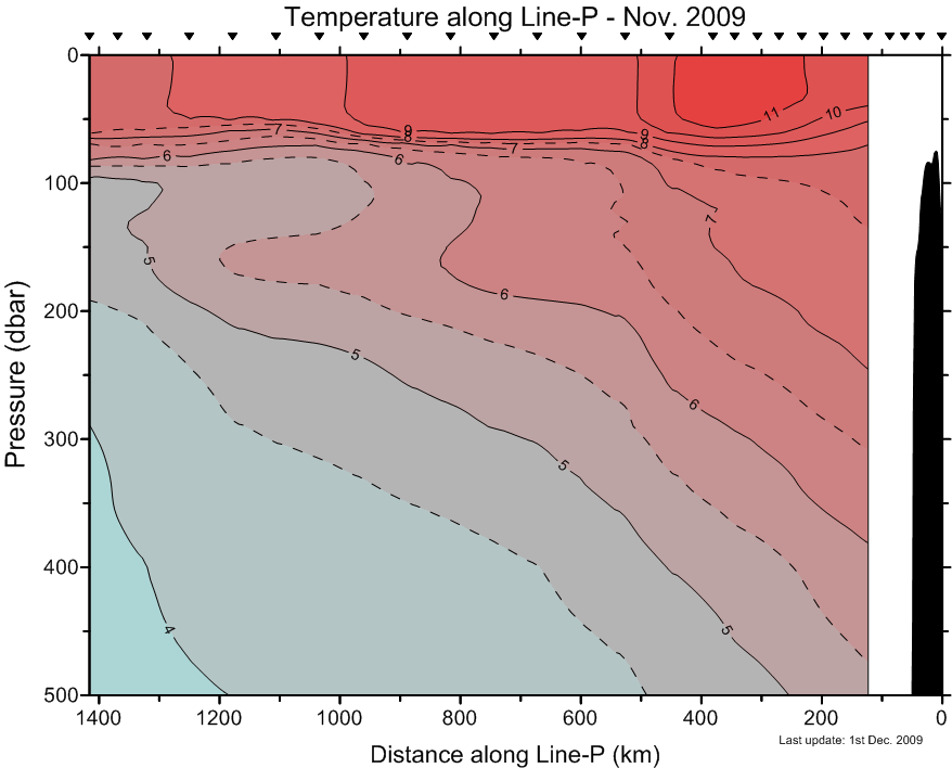 La ligne océanique P est une série d'observations du golfe de l'Alaska depuis 1956 jusqu'à aujourd'hui. Ces données sont utilisées ici en raison de la disponibilité des observations climatologiques fiables retrouvées le long de la ligne océanique P.