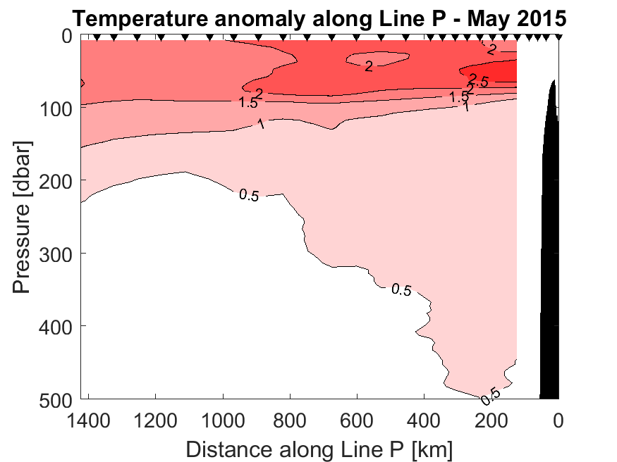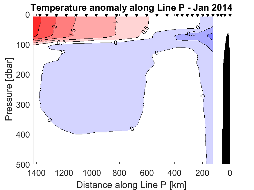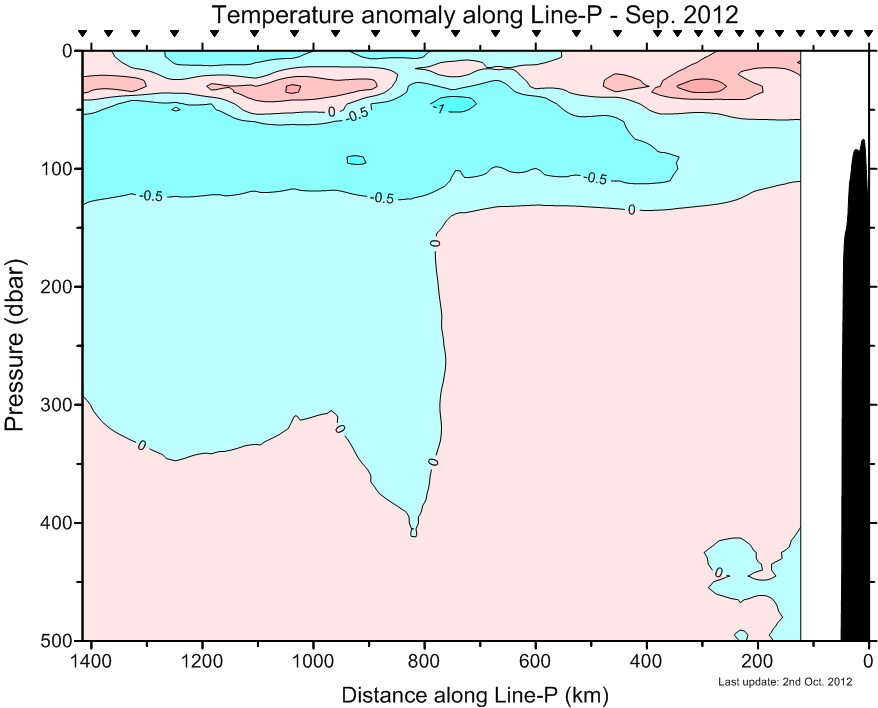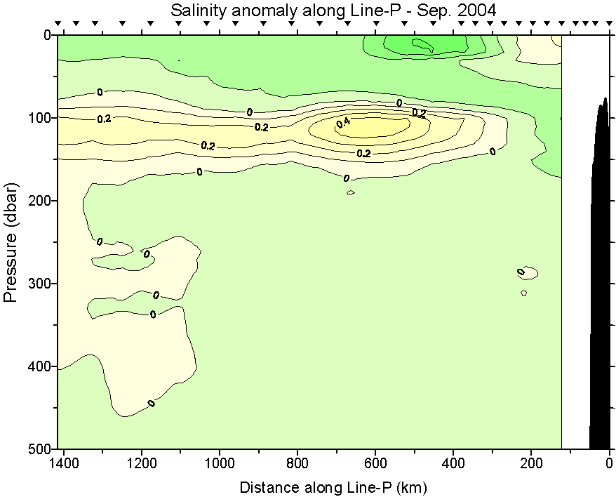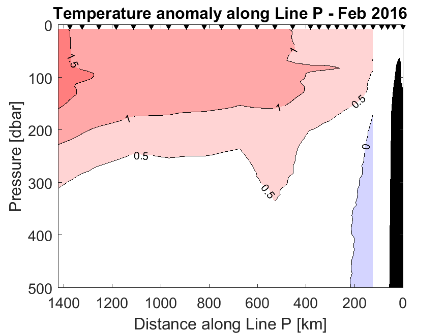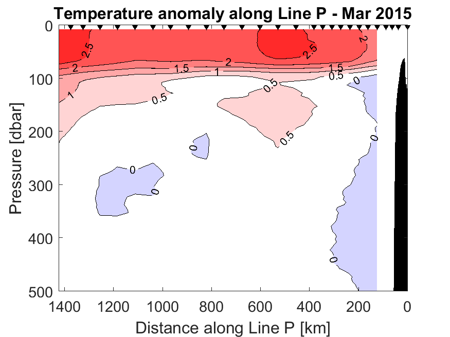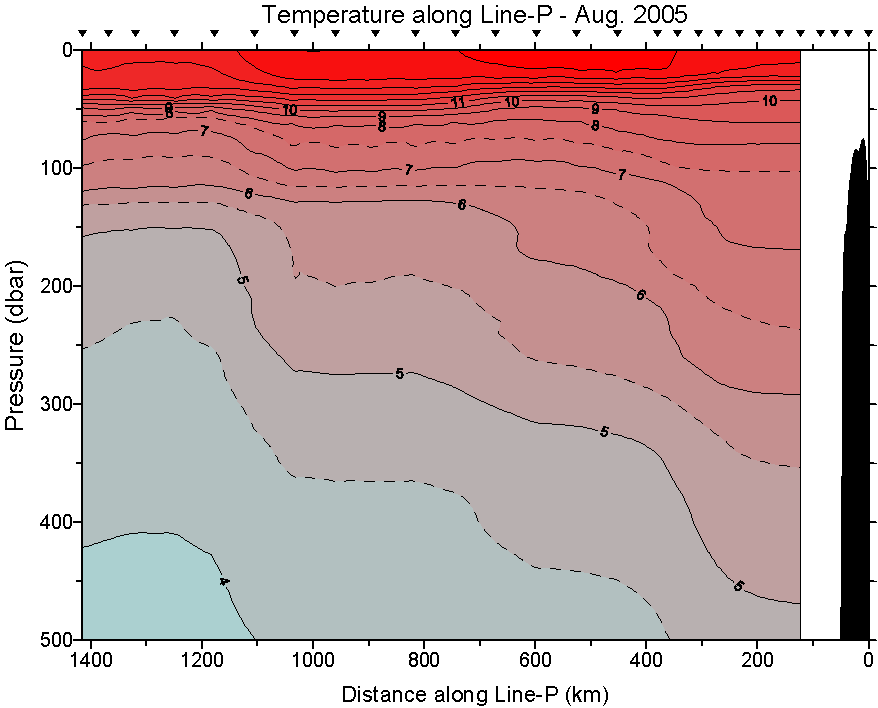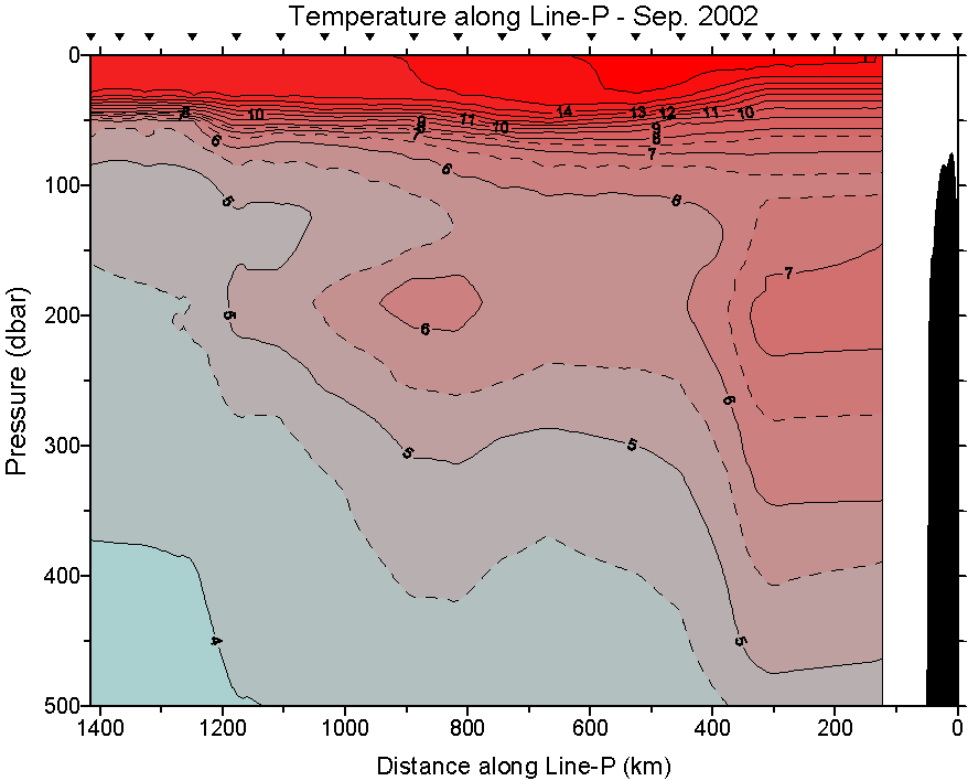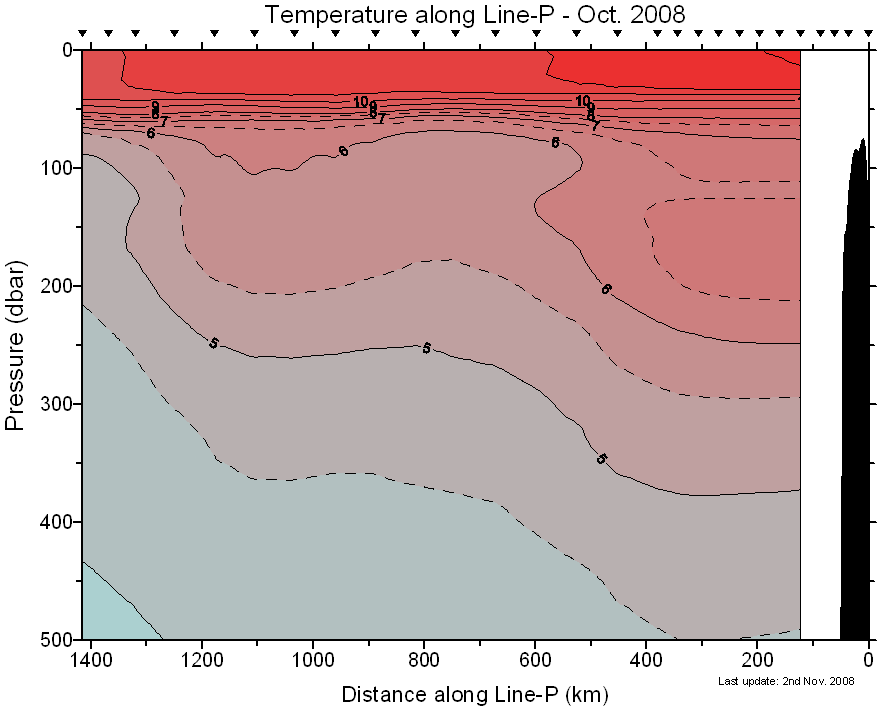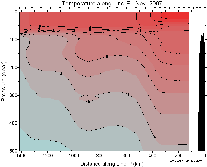 La ligne océanique P est une série d'observations du golfe de l'Alaska depuis 1956 jusqu'à aujourd'hui. Ces données sont utilisées ici en raison de la disponibilité des observations climatologiques fiables retrouvées le long de la ligne océanique P.