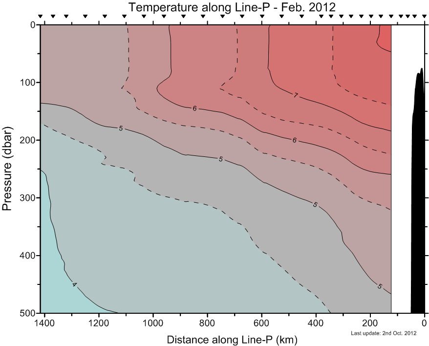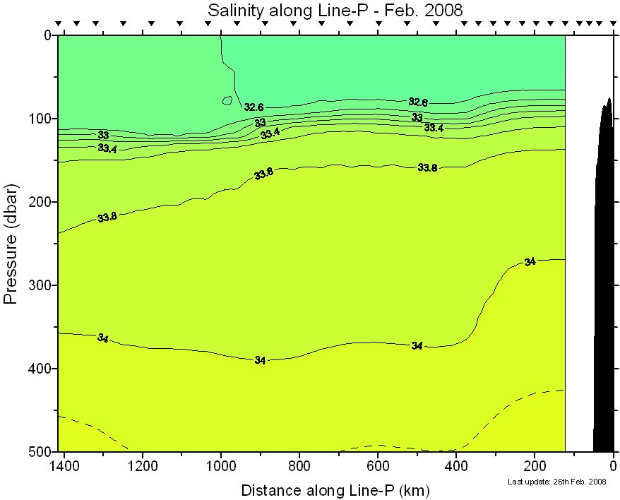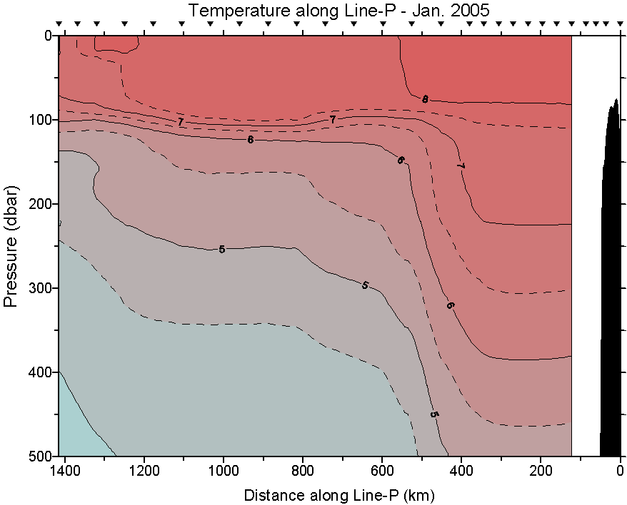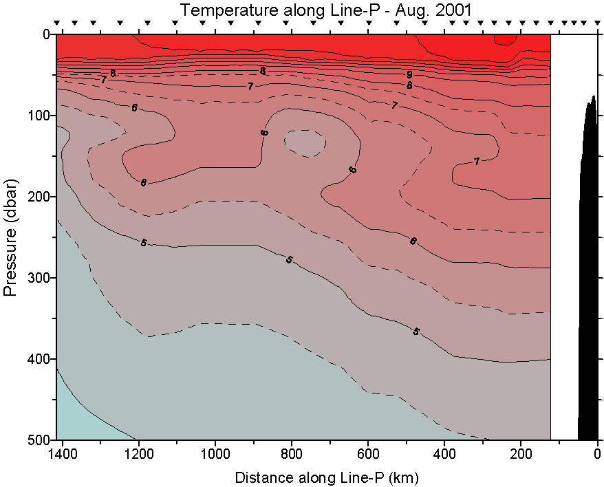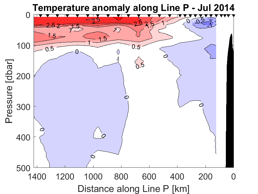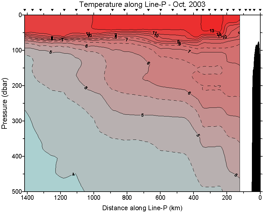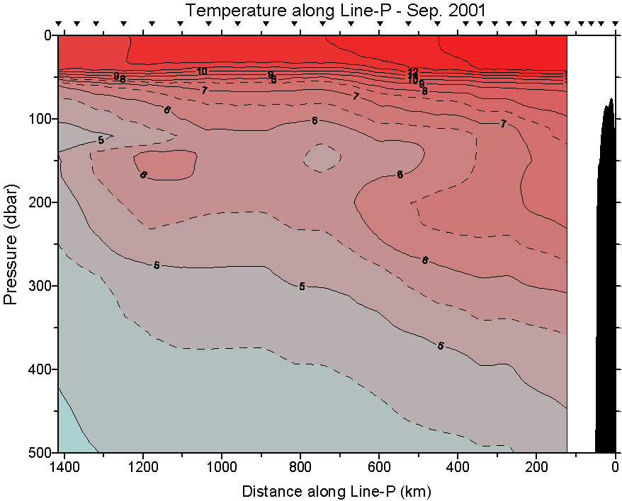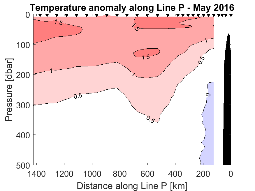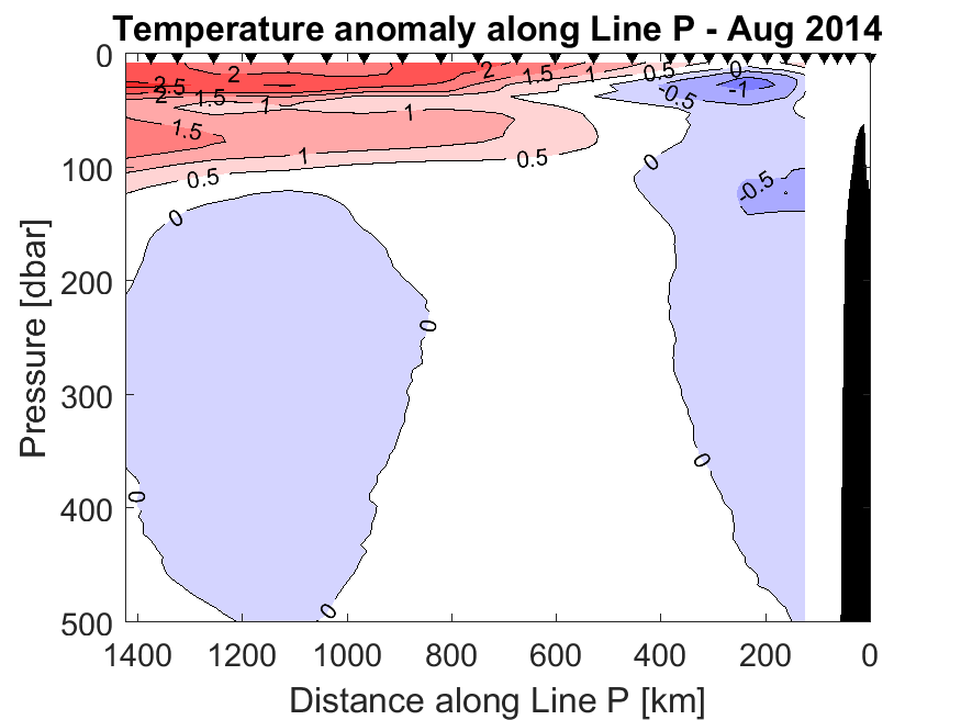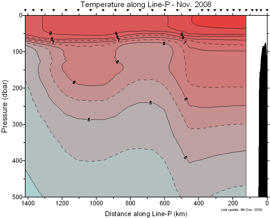 La ligne océanique P est une série d'observations du golfe de l'Alaska depuis 1956 jusqu'à aujourd'hui. Ces données sont utilisées ici en raison de la disponibilité des observations climatologiques fiables retrouvées le long de la ligne océanique P.