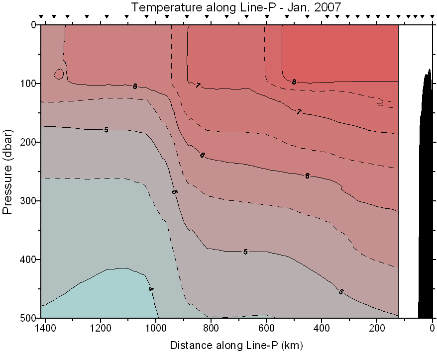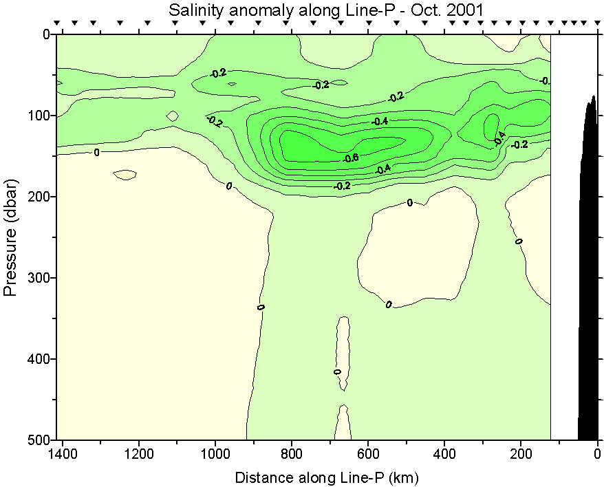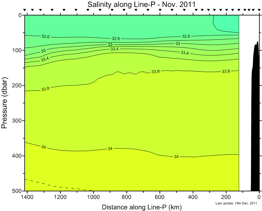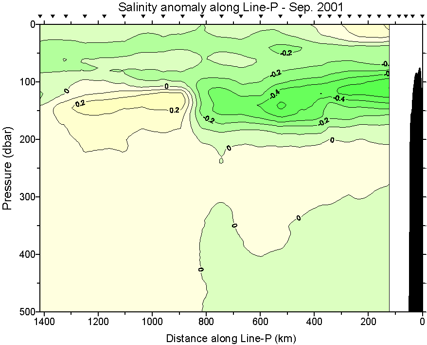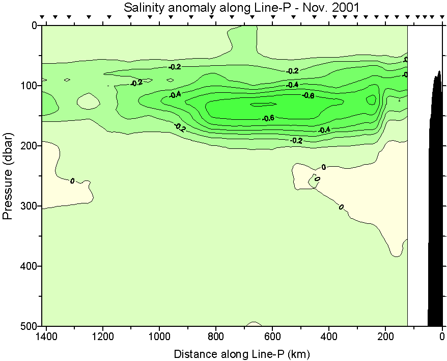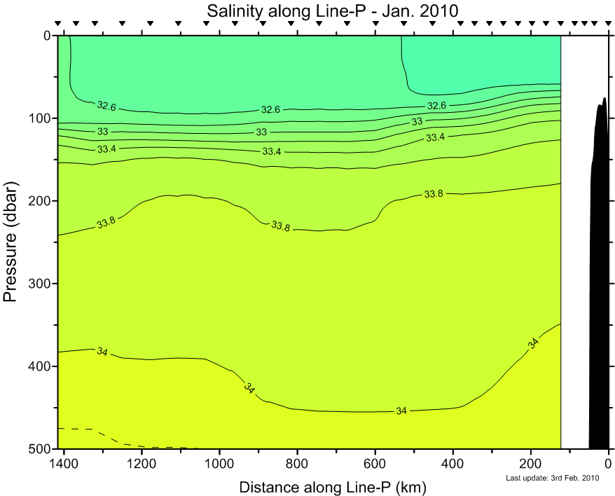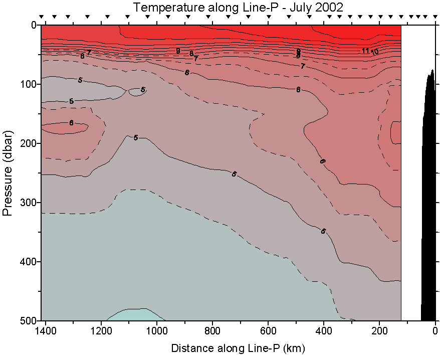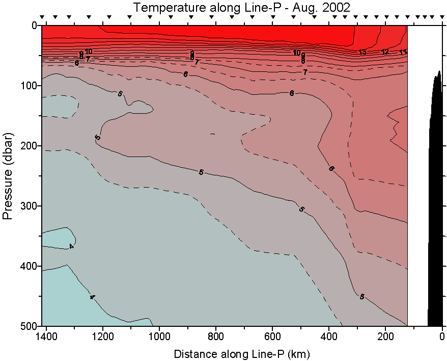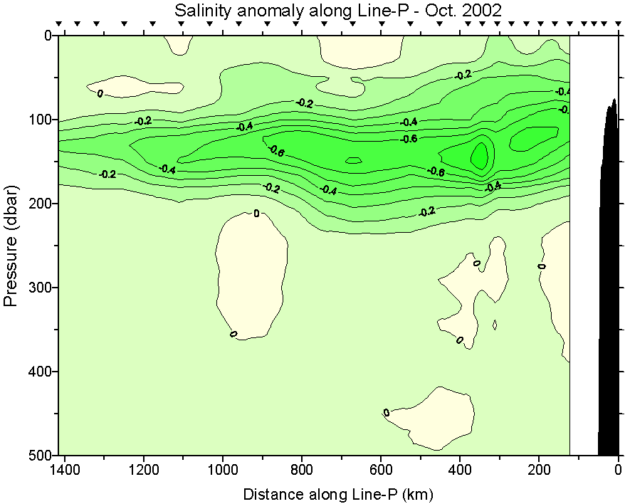 La ligne océanique P est une série d'observations du golfe de l'Alaska depuis 1956 jusqu'à aujourd'hui. Ces données sont utilisées ici en raison de la disponibilité des observations climatologiques fiables retrouvées le long de la ligne océanique P.
