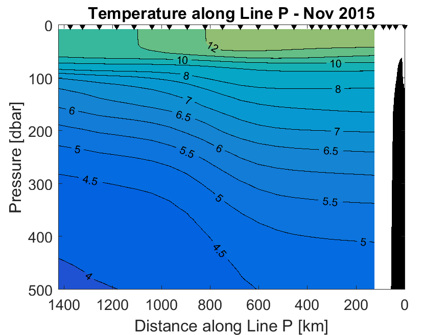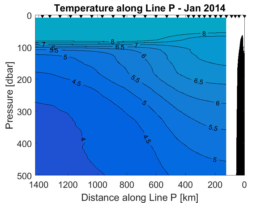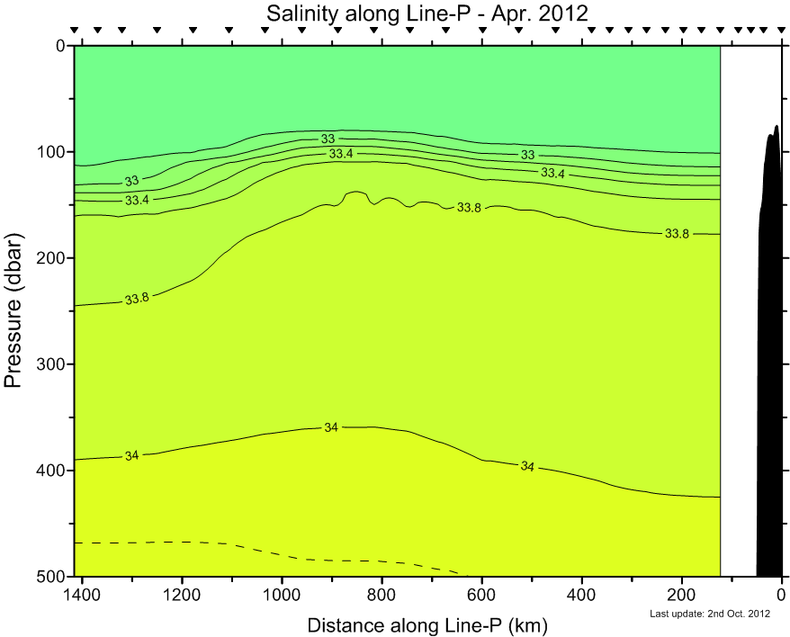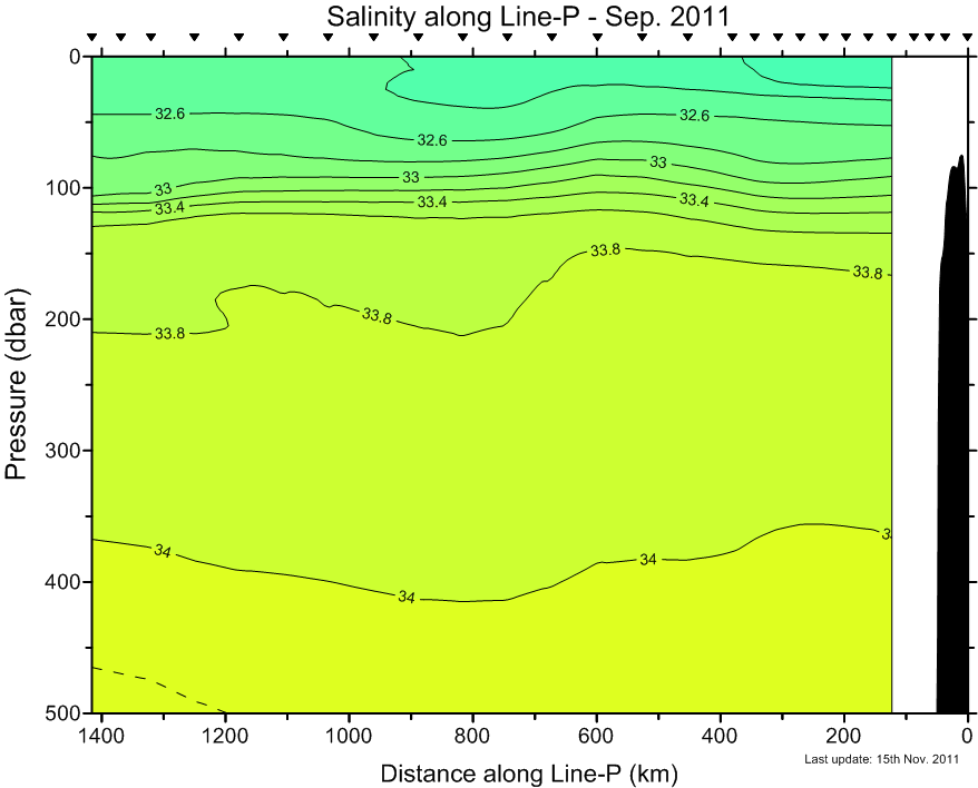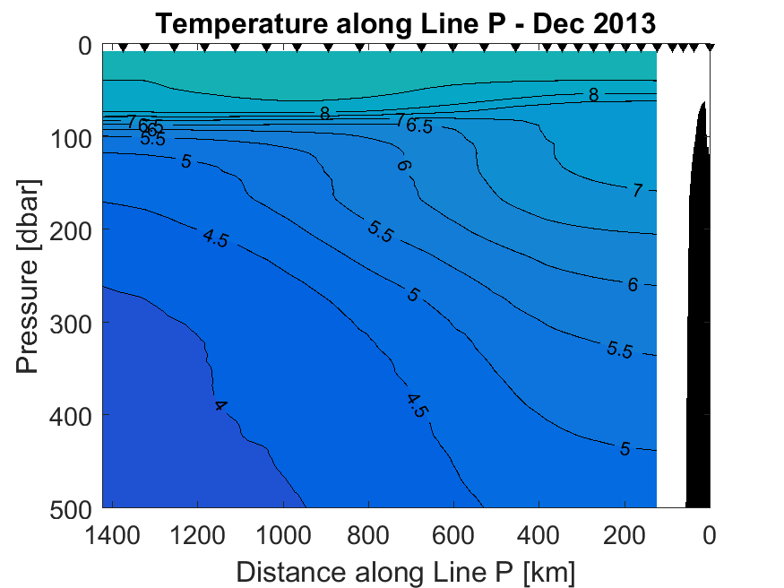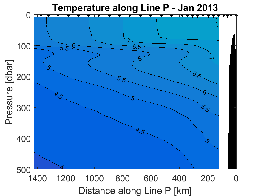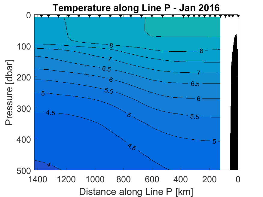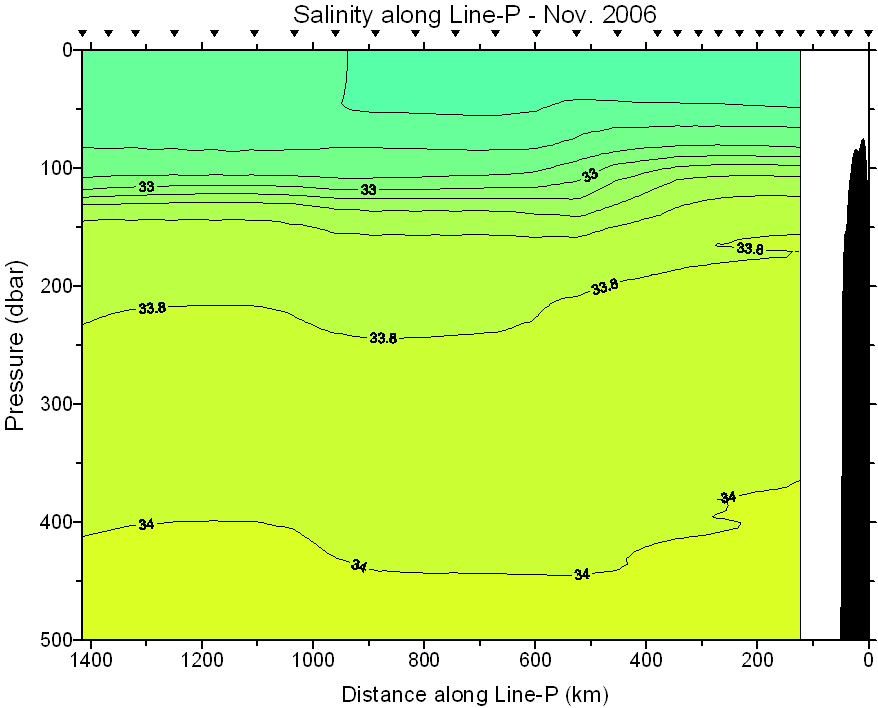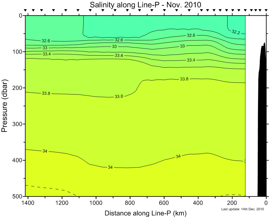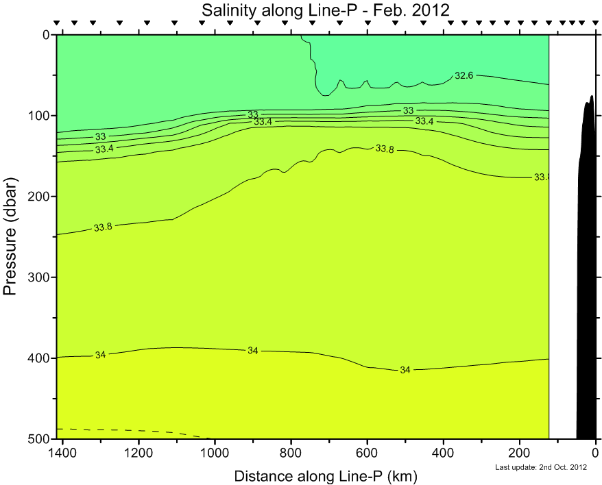 La ligne océanique P est une série d'observations du golfe de l'Alaska depuis 1956 jusqu'à aujourd'hui. Ces données sont utilisées ici en raison de la disponibilité des observations climatologiques fiables retrouvées le long de la ligne océanique P.