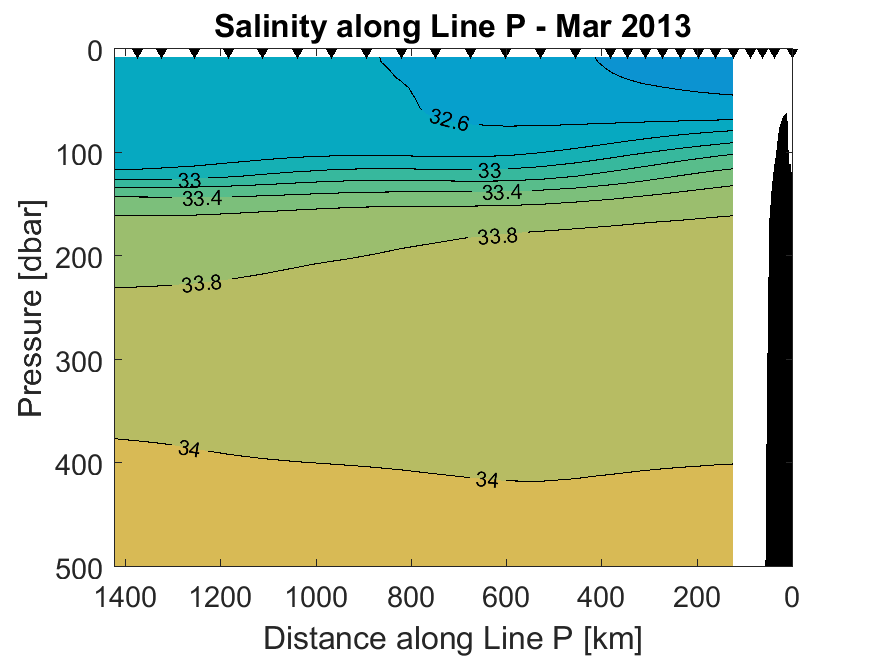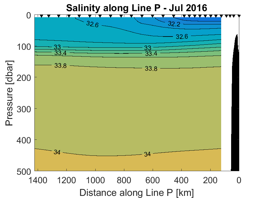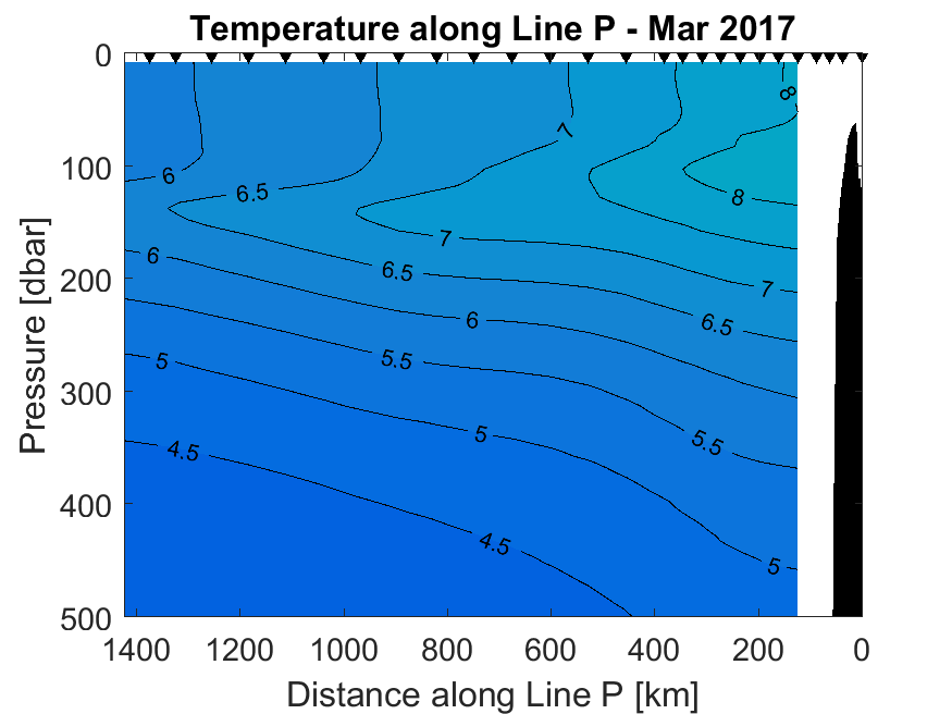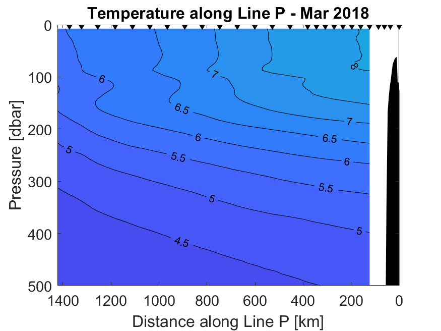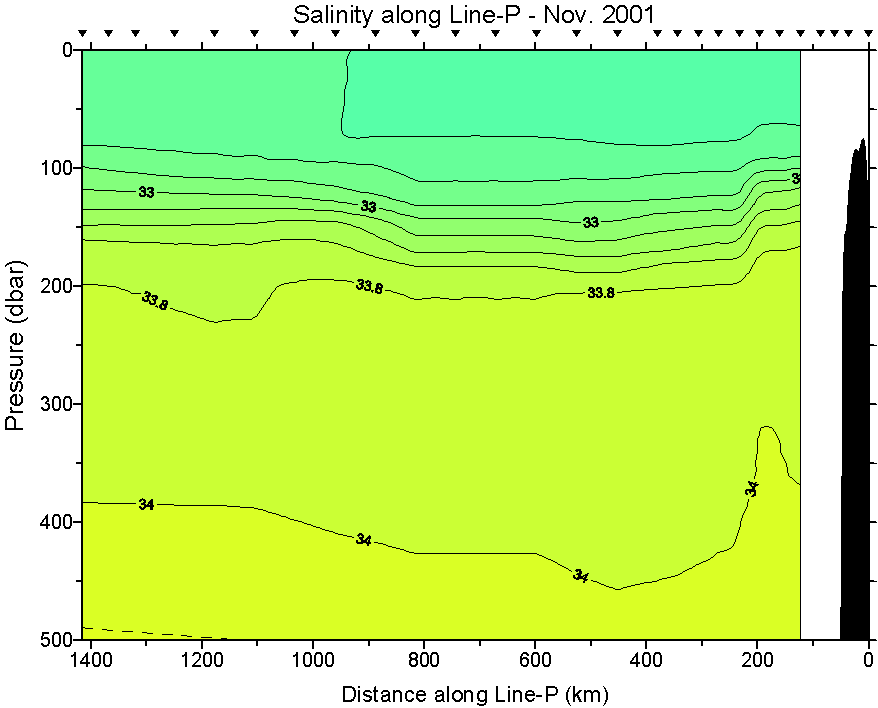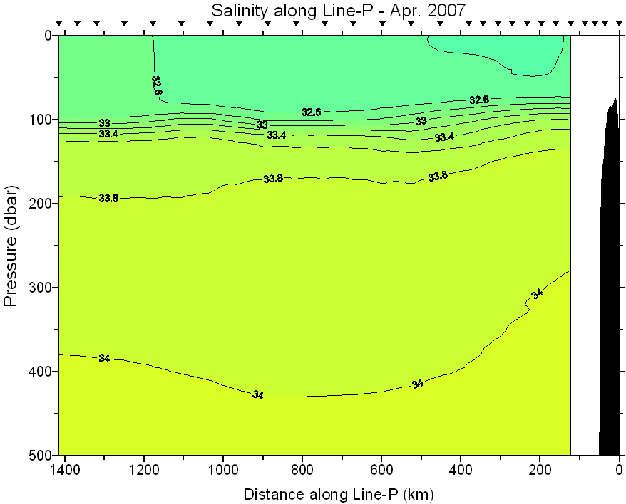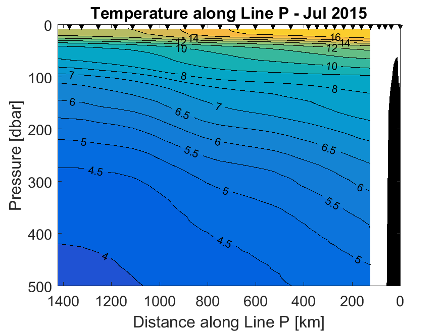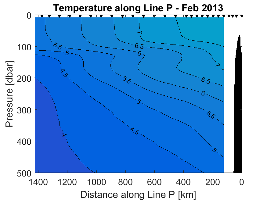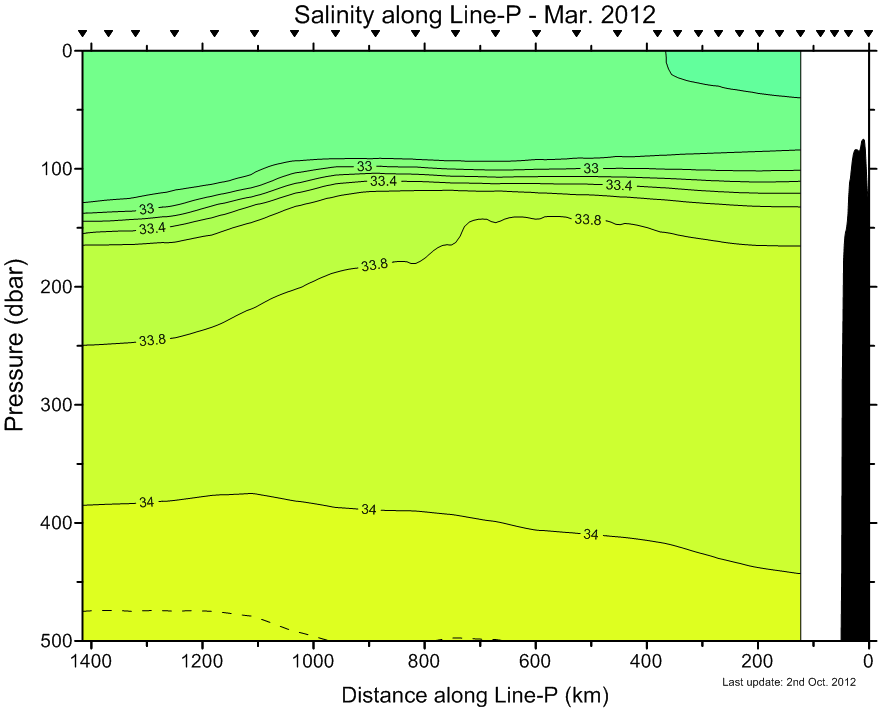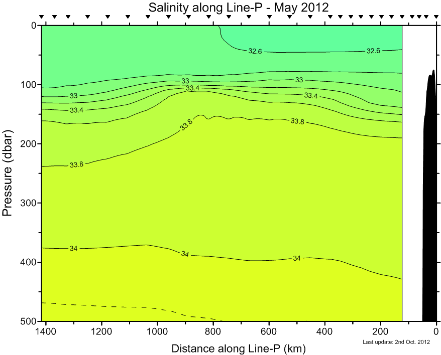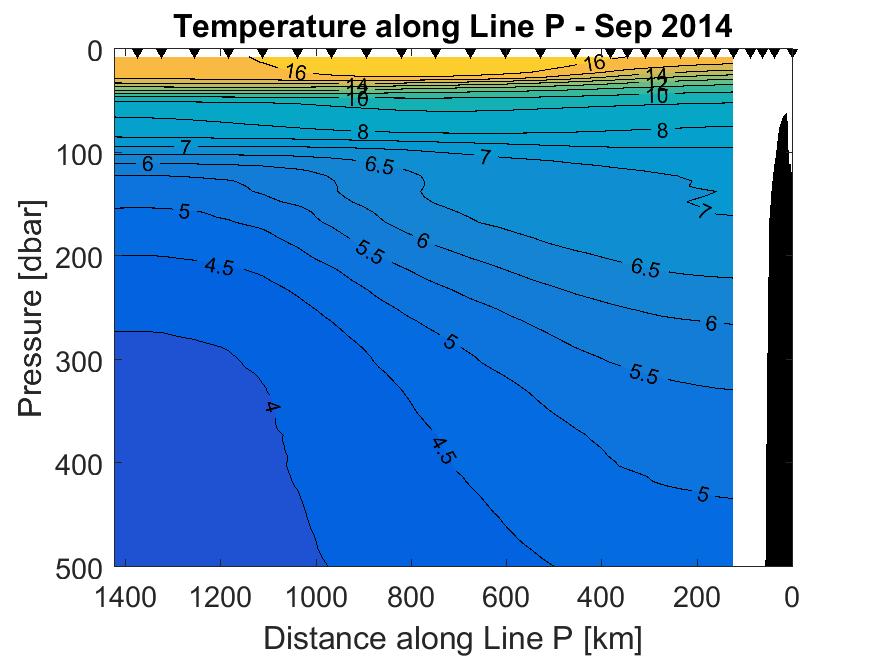 La ligne océanique P est une série d'observations du golfe de l'Alaska depuis 1956 jusqu'à aujourd'hui. Ces données sont utilisées ici en raison de la disponibilité des observations climatologiques fiables retrouvées le long de la ligne océanique P.