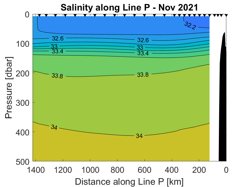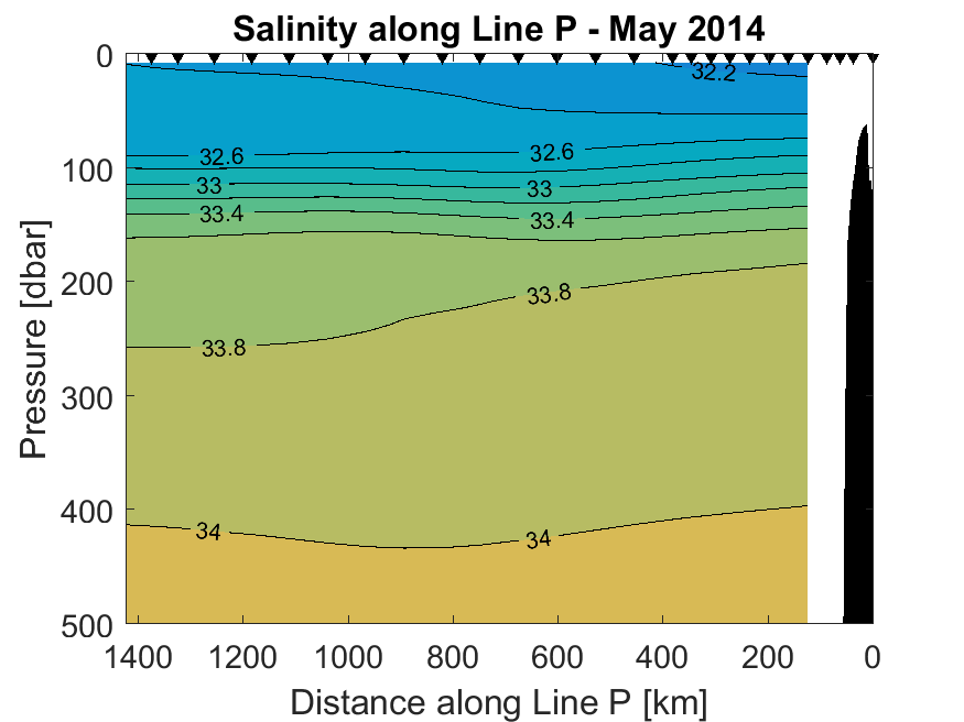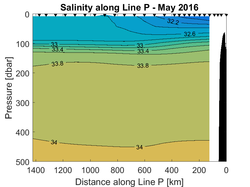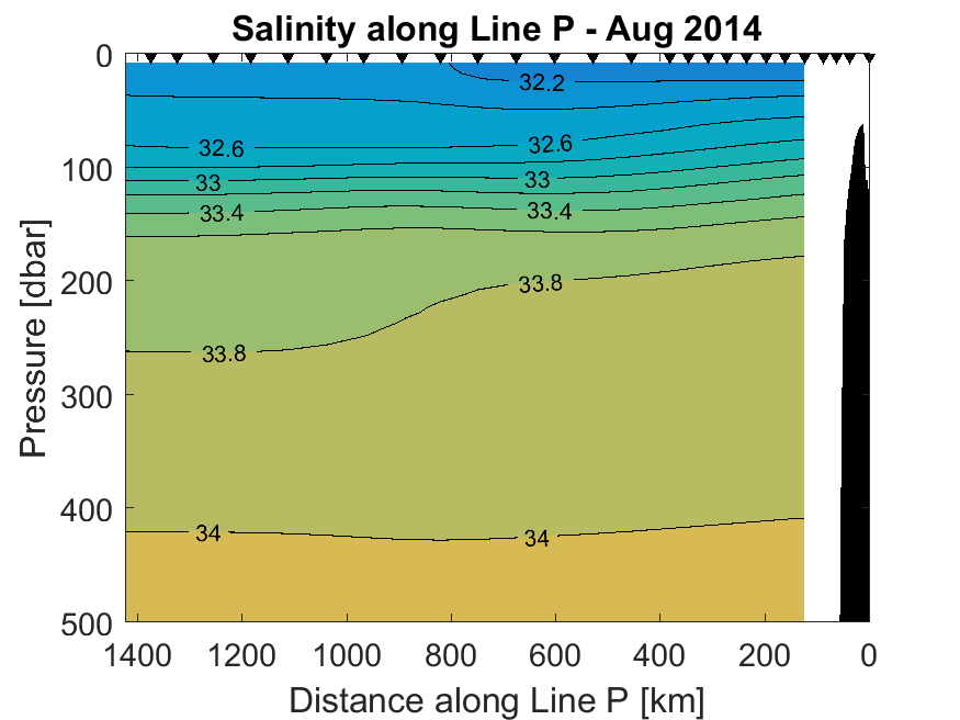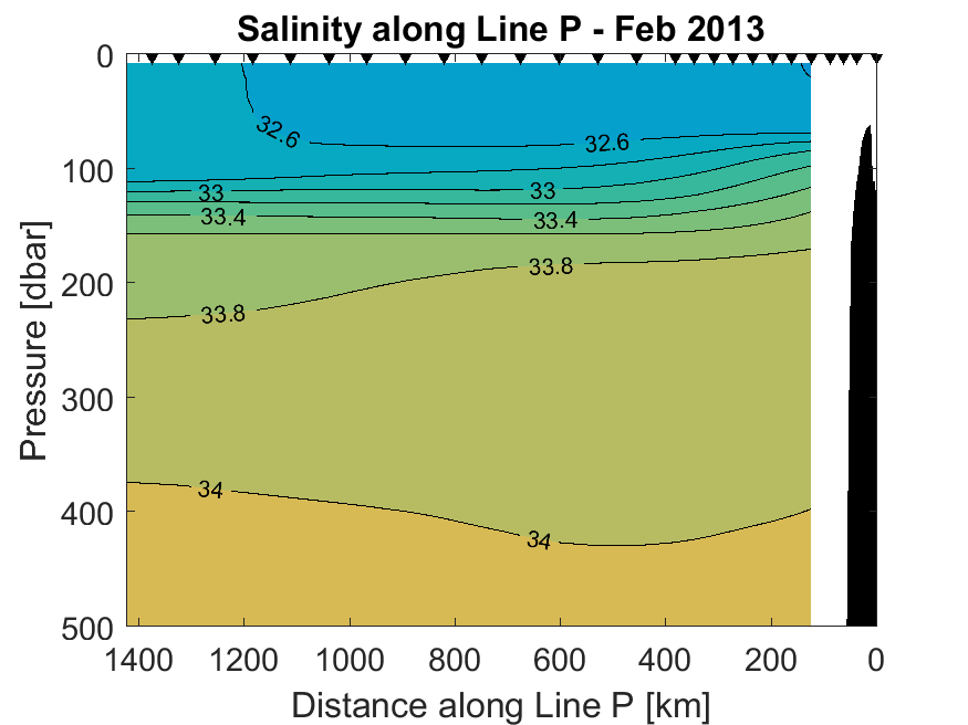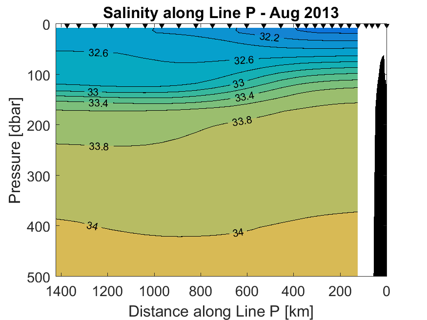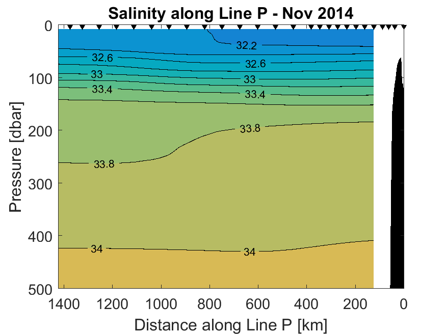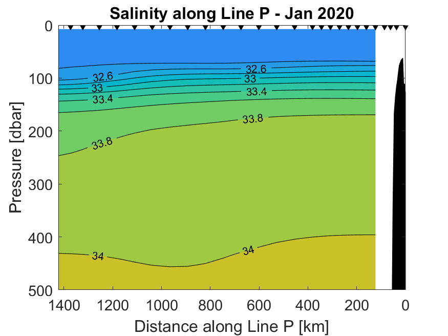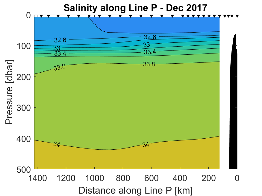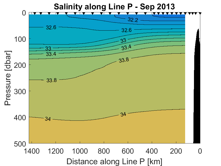 La ligne océanique P est une série d'observations du golfe de l'Alaska depuis 1956 jusqu'à aujourd'hui. Ces données sont utilisées ici en raison de la disponibilité des observations climatologiques fiables retrouvées le long de la ligne océanique P.