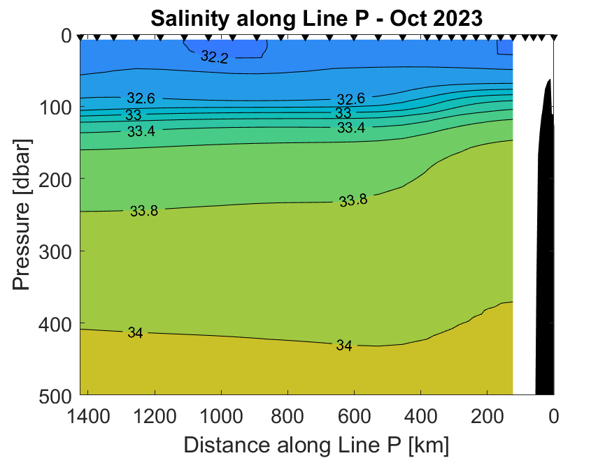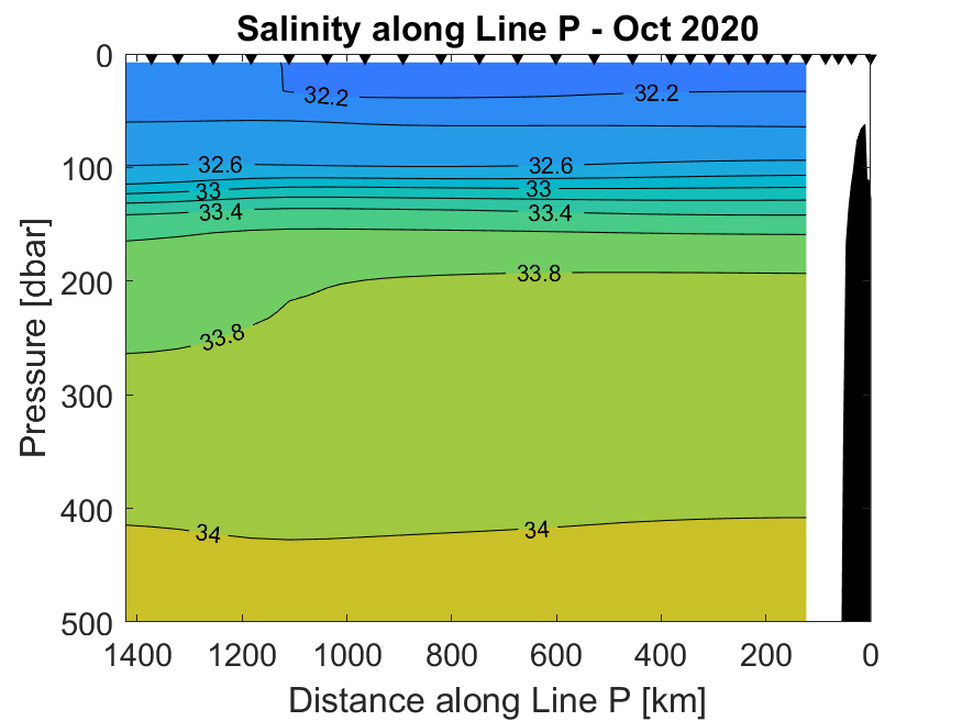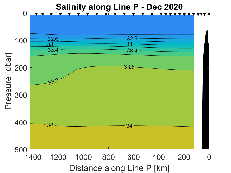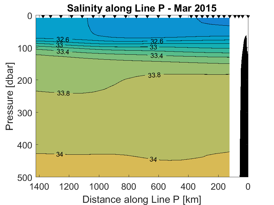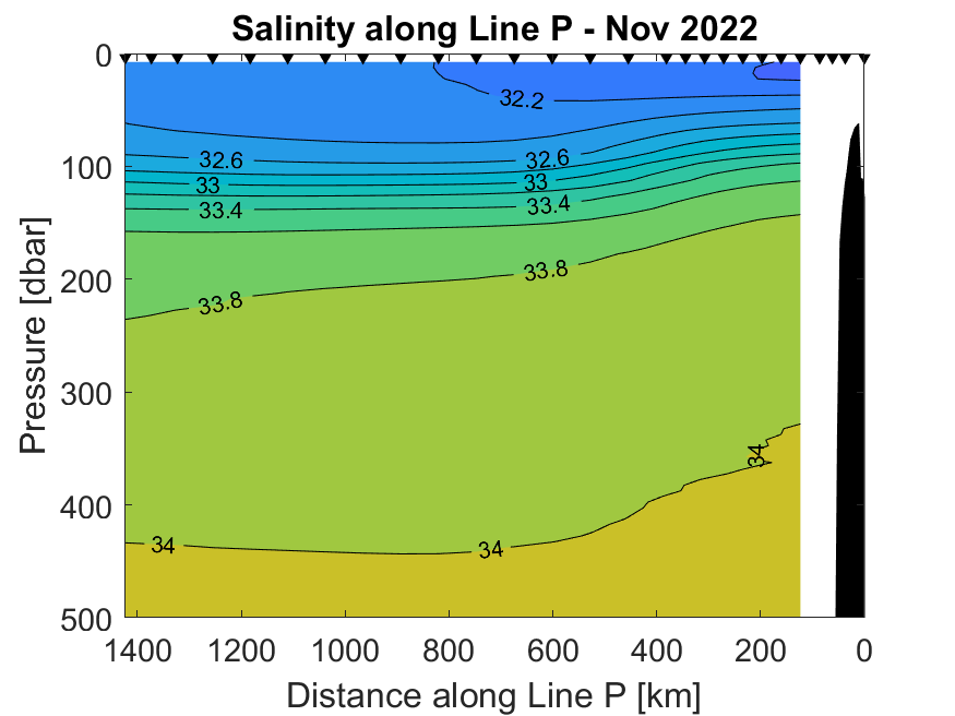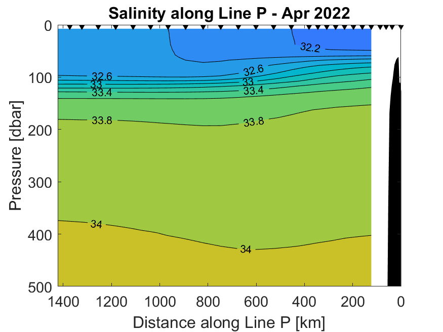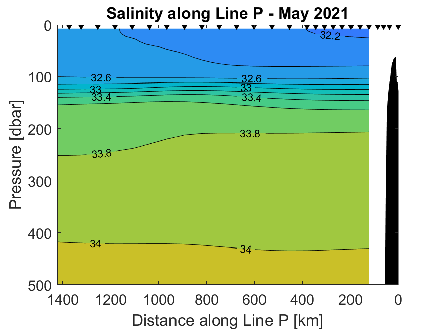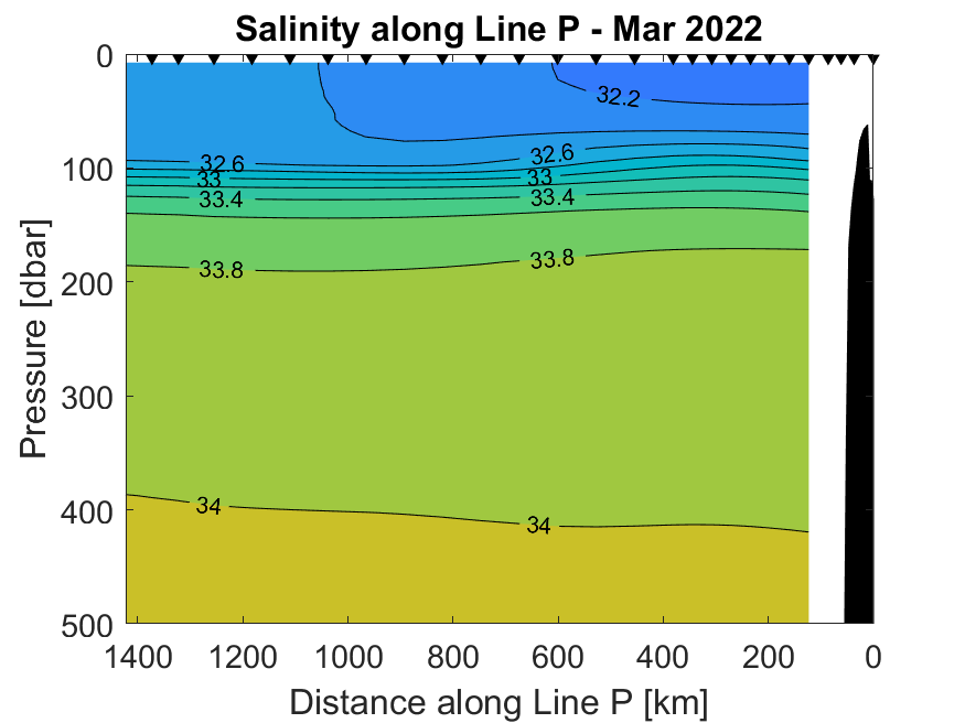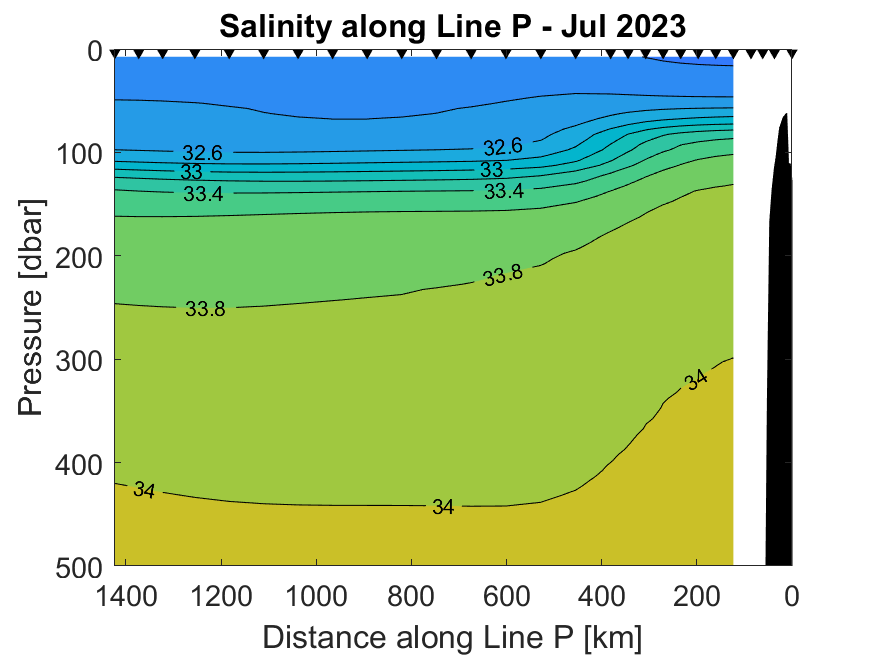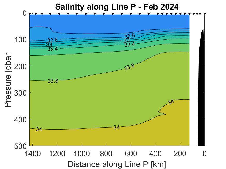 Pour le mois et l'année en cours, les sections sont calculées en utilisant les données disponibles à ce jour. Ces sections sont susceptibles d'être modifiées. Les versions définitives seront publiées lorsque toutes les données seront disponibles. Les anomalies sont calculées par rapport à la climatologie de la ligne P.
